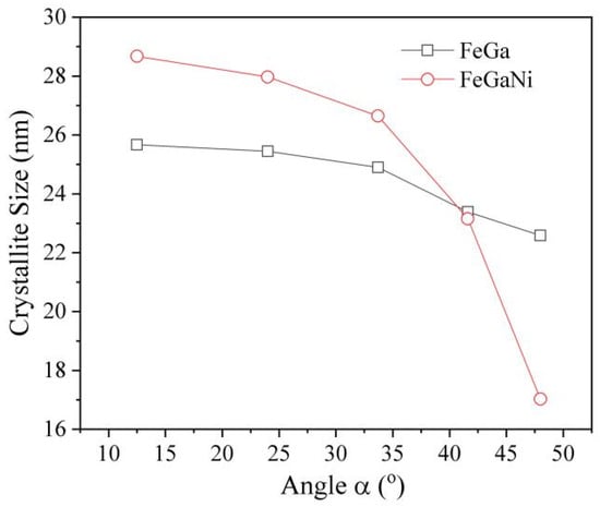 Crystallite size of FeGa and FeGaNi films calculated by Scherrer’s law with FWHM of (110) peak.