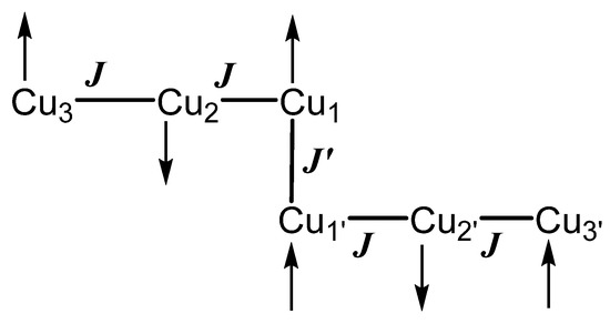 H = J (S1·S2 + S2·S3 + S1′·S2′ + S2′·S3′) + J′ (S1·S1′) + gβH (S1 + S2 + S3 + S1′ + S2′ + S3′)