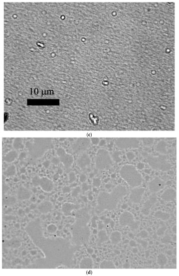 Light microscopic examination of the “large” MLPSICG demonstrated their spherical shape and a size of approximately 1 µm (Figure 2c). When dried, the liposomes “burst” leaving only a contour of phospholipids (Figure 2d). This fact led us to the conclusion that in order to obtain TEM images of MLPSICG processed with ultrasound, it is necessary to use a protector. For this purposed, we used glucose. TEM imaging showed the spherical shape of the MLPSICG and yielded their size comparable to that determined with DLS (Figure 2e). It can also be observed that each individual MLPSICG contains magnetite nanoparticle(s) inside. The figure also shows agglomerates consisting of several adherent liposomes. This is due to the fact that a certain time elapsed from the moment of synthesis to the analysis of TEM images, during which some of the liposomes agglomerated.