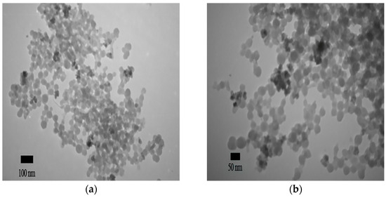 For the characterization of the synthesized nanomaterials, MnFe2O4 nanoparticles, the SiO2/MnFe2O4 nanocomposite, and the SiO2/MnFe2O4/ZIF-8 nanocomposite, the proper techniques were used, as discussed in this section. TEM and SEM images were used for the identification of particle size and surface morphology, as shown in Figure 2. Figure 2a shows the TEM image of MnFe2O4 nanoparticles indicating the nanosize of the synthesized magnetic particles. Figure 2b shows the TEM image of the SiO2/MnFe2O4 nanocomposite that clearly showed the good addition of SiO2 to the magnetic MnFe2O4 nanoparticles. Figure 2c shows the TEM image of the SiO2/MnFe2O4/ZIF-8 nanocomposite that showed the good dispersion of the SiO2/MnFe2O4 nanocomposite inside the structure of ZIF-8 nanostructures. Moreover, the size and morphology of synthesized nanomaterials were confirmed using SEM images. Figure 2d shows the SEM image of the synthesized magnetic MnFe2O4 nanoparticles, confirming the nanoscale size of the particles with agglomeration tendency due to the magnetic behavior. Figure 2e shows the SEM image of the SiO2/MnFe2O4 nanocomposite with a larger size than MnFe2O4 nanoparticles due to the addition of the SiO2 layer that confirms the TEM results. Additionally, Figure 2e indicates that the SiO2/MnFe2O4 nanocomposite was uniform. Figure 2f shows the SEM image of the SiO2/MnFe2O4/ZIF-8 nanocomposite, indicating the nanosize scale of the synthesized nanocomposite after the embedding of the SiO2/MnFe2O4 nanocomposite inside the structure of ZIF-8. The SiO2/MnFe2O4/ZIF-8 nanocomposite showed a wide size range distribution from 30.0 nm to 200.0 nm with a rhombic dodecahedral structure. The SEM and TEM images show that the SiO2/MnFe2O4 nanocomposite was well encapsulated by a shell of ZIF-8.