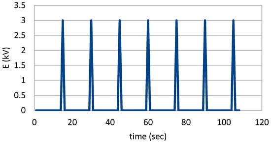 Time course of pulses used on the flow cuvette to execute electroporation.