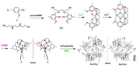 - Liu, C.-M.; Sun, R.; Hao, X.; Wang, B. Chiral Co-Crystals of (S)- or (R)-1,1′-Binaphthalene-2,2′-diol and Zn2Dy2 Tetranuclear Complexes Behaving as Single-Molecule Magnets. Cryst. Growth Des. 2021, 21, 4346–4353. [Google Scholar] [CrossRef]