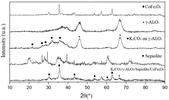- Junior, E.G.S.; Justo, O.R.; Perez, V.H.; Melo, F.d.; Reyero, I.; Serrano-Lotina, A.; Mompean, F.J. Biodiesel synthesis using a novel monolithic catalyst with magnetic properties (K2CO3/γ-Al2O3/Sepiolite/γ-Fe2O3) by ethanolic route. Fuel 2020, 271, 117650. [Google Scholar] [CrossRef]
