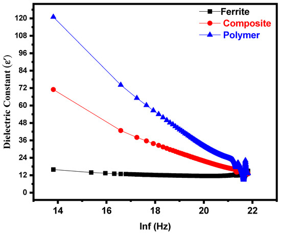 The dielectric constant of Y-type hexaferrite Sr2Co2Fe12O22, composite (Sr2Co2Fe12O22 + PPy-DBSA) and polymer PPy-DBSA.