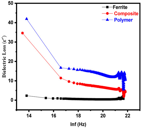 The drop in dielectric permittivity with greater frequency proves that dielectric materials exhibit generated electric moments when subjected to the external electric field. The further point is that as the applied electric field grows, the generated moments’ polarization cannot [41]. By increasing the applied field frequency, the electron exchange between Fe2+ and Fe3+ ions decreases, which results in a lower absorption coefficient and dielectric loss in ferrite samples.