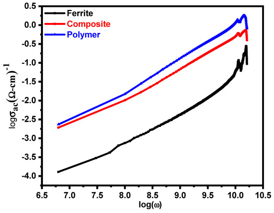 Figure 6 depicts the log characteristics of the frequency response of electrical properties of the samples. AC conductivity follows the empirical law. The n is a fractions exponential (0 ≤ n ≤ 1), which is connected to the dynamics of different jumping ions [47]. The n = 0 indicates direct current conductivity. The presence of greater values of “n” in the analyzed sampling indicates that the conduction phenomena follow a hopping process [48].
