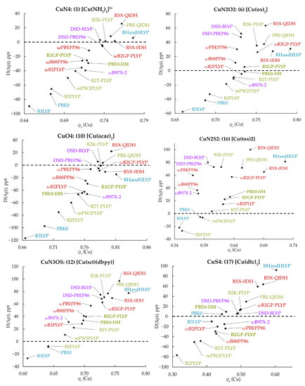 - Gómez-Piñeiro, R.J.; Pantazis, D.A.; Orio, M. Comparison of Density Functional and Correlated Wave Function Methods for the Prediction of Cu(II) Hyperfine Coupling Constants. ChemPhysChem 2020, 21, 2667–2679. [Google Scholar] [CrossRef] [PubMed]