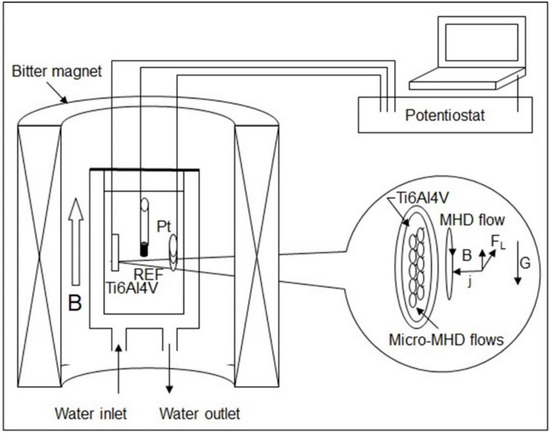 - Aogaki, R.; Fueki, K.; Mukaibo, T. Application of Magnetohydrodynamic Effect to the Analysis of Electrochemical Reactions -1. MHD Flow of an Electrolyte Solution in an Electrode-Cell with a Short Rectangular Channel. Denki Kagaku (Presently Electrochem.) 1975, 43, 504–508. [Google Scholar] [CrossRef]