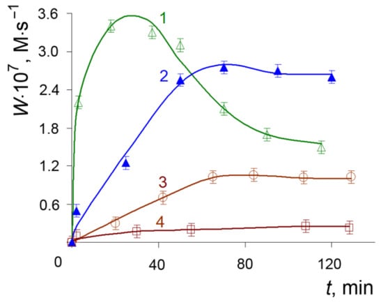 - Sokolov, A.; Popov, S.; Pliss, E.; Loshadkin, V. Computer Program “Kinetics of 2012—A Program to Calculate the Kinetic Parameters of Chemical and Biochemical Processes. In Official Bulletin of the Federal Service for Intellectual Property; Computer Programs, Database, Topographies of Integrated Circuits 3; Federal Service for Intellectual Property: Moscow, Russia, 2013. [Google Scholar]