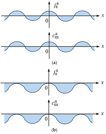 To determine the arbitrary constants, i.e., , , , , and of and , the amplitude of the current density fluctuation is solved. Due to the low electric conductivity, the contribution of the electromagnetic induction to the current density is negligible, so Equation (D3b) is approximated by