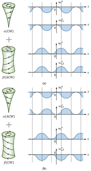 Due to the unit imaginary number i, and change their phases from even to odd, whereas and change their phases from odd to even. As a result, the free and rigid surface components are embedded into the real and imaginary parts of the complex amplitude, as follows: