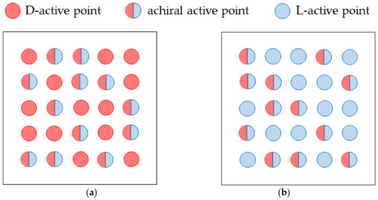 The chiral activity of the electrode is estimated by the enantiomeric excess (ee) ratio introduced by Mogi [9,10,11,12,13,14,15,16,17,18]. A characteristic fact derived from the previous experimental results is that the obtained ee ratios are distributed around 0.1. Does such a not-so-high ratio mean the low efficiency of this method? To tell the truth, it is important evidence for the three-generation model.