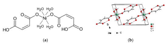 - Gupta, M.P.; Geise, H.J.; Lenstra, A.T.H. IUCr Tetraaquabis(Hydrogen Maleato)Nickel(II), [Ni(C4H3O4)2(H2O)4]. Acta Crystallogr. Sect. C Cryst. Struct. Commun. 1984, 40, 1152–1154. [Google Scholar] [CrossRef]
