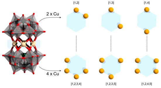 - Yamase, T.; Fukaya, K.; Nojiri, H.; Ohshima, Y. Ferromagnetic Exchange Interactions for Cu612+ and Mn612+ Hexagons Sandwiched by Two B-α-[XW9O33]9− (X = AsIII and SbIII) Ligands in D3d-Symmetric Polyoxotungstates. Inorg. Chem. 2006, 45, 7698–7704. [Google Scholar] [CrossRef]