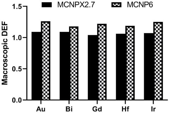 The comparison of macroscopic dose enhancement factor (DEF) of different nanoparticles.