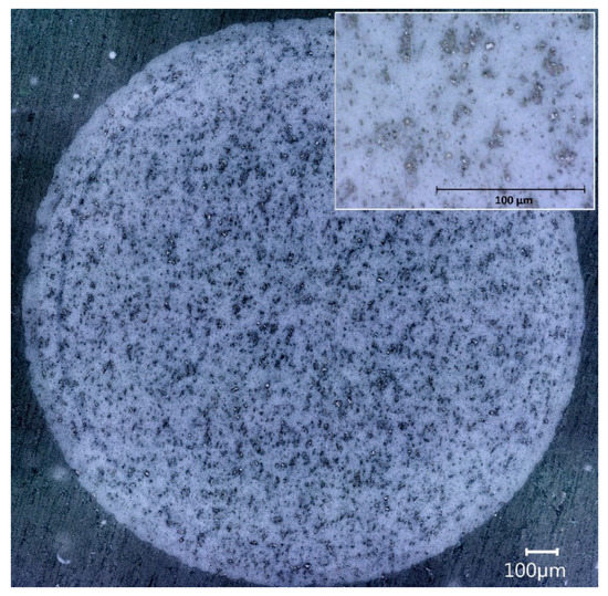 Microscopic image of the microstructure of the used PET-G filament containing metal oxides.