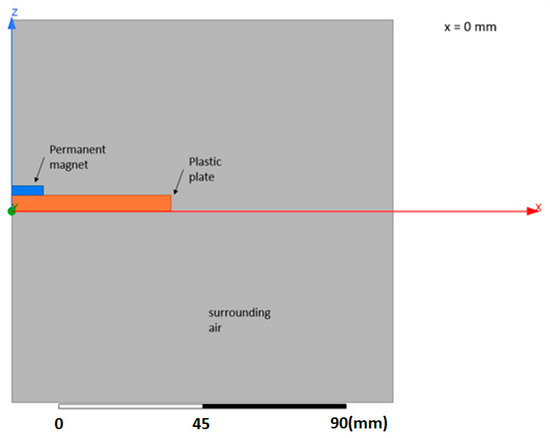 The FEM model of the permanent magnet and plastic plate with a magnetic filler.