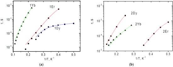 - Petrosyants, S.P.; Babeshkin, K.A.; Gavrikov, A.V.; Ilyukhin, A.B.; Belova, E.V.; Efimov, N.N. Towards comparative investigation of Er- and Yb-based SMMs: The effect of the coordination environment configuration on the magnetic relaxation in the series of heteroleptic thiocyanate complexes. Dalton Trans. 2019, 48, 12644–12655, and references therein. [Google Scholar] [CrossRef]