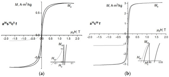 Here, M stands for Ms or Mrs and N is the number of particles with mean volume vmean and concentration Cf in the sample of volume Vs. The value of magnetization of a system of uniaxial ferrimagnetic particles randomly distributed in a cylindrical volume is determined by the modified method of moments and expansion into a Gram–Charlier series [84,86].