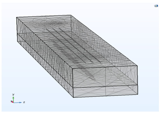 The model is meshed using a global adaptive mesh refinement method, which determines the point with the largest local error in the modeling domain by means of an error estimation strategy. Then, the FEM analysis software generates a completely new mesh based on the error estimation information. The software takes into account the local errors of the entire model while using smaller cells in the regions with relatively large local errors. The complete mesh contains “127,484” domain cells, “13,987” boundary cells and “5625” edge cells (Figure 4).
