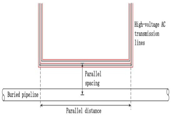 The parallel spacing is the distance between the transmission conductor at the vertical projection to the ground and the pipeline at the vertical projection from the ground (Figure 12).