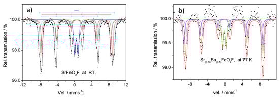 - Berry, F.J.; Moore, E.A.; Ren, X.; Helgason, Ö.; Thomas, M.F.; Shim, S. Iron-57 Mossbauer spectroscopic study of fluorinated strontium orthoferrite. Hyperfine Interact 2008, 185, 111–114. [Google Scholar] [CrossRef]