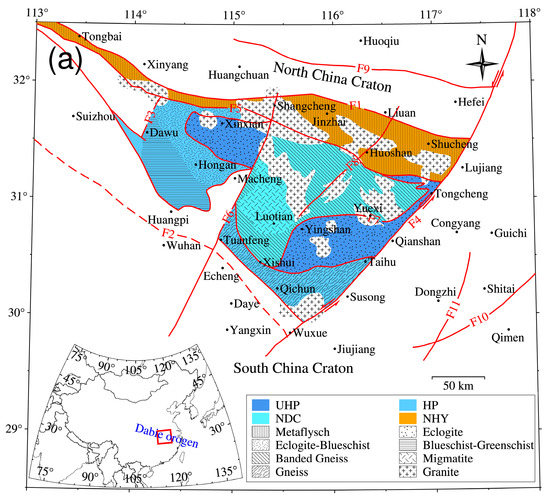 - Liu, Y.; Li, S.; Xu, S.; Jahn, B.; Zheng, Y.; Zhang, Z.; Jiang, L.; Chen, G.; Wu, W. Geochemistry and geochronology of eclogites from the northern dabie mountains, central china. J. Asian Earth Sci. 2005, 25, 431–443. [Google Scholar] [CrossRef]