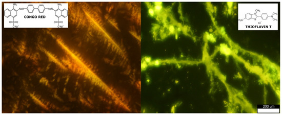 - Yakupova, E.I.; Bobyleva, L.G.; Vikhlyantsev, I.M.; Bobylev, A.G. Congo Red and amyloids: History and relationship. Biosci. Rep. 2019, 39, 1495–1506. [Google Scholar] [CrossRef]