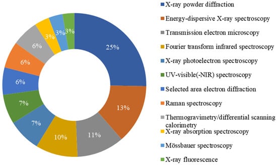 1 Small-angle X-ray scattering. 2 Raman spectroscopy. 3 Fourier-transform infrared spectroscopy. 4 X-ray photoelectron spectroscopy. 5 Photoluminescence spectroscopy. 6 Mössbauer spectroscopy. 7 Selected area electron diffraction. 8 X-ray absorption spectroscopy. 9 X-ray magnetic circular dichroism. 10 Energy-dispersive X-ray spectroscopy. 11 Inductively coupled plasma atomic (optical) emission spectroscopy. 12 Auger electron spectroscopy.