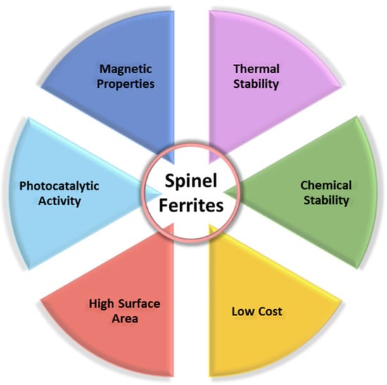 - Qin, H.; He, Y.; Xu, P.; Huang, D.; Wang, Z.; Wang, H.; Wang, Z.; Zhao, Y.; Tian, Q.; Wang, C. Spinel Ferrites (MFe2O4): Synthesis, Improvement and Catalytic Application in Environment and Energy Field. Adv. Colloid. Interface Sci. 2021, 294, 102486. [Google Scholar] [CrossRef]