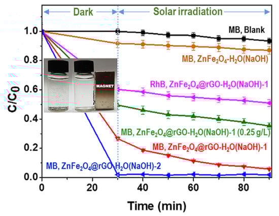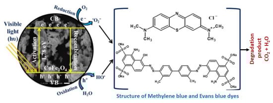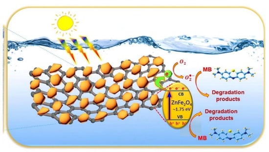 - Kour, S.; Jasrotia, R.; Puri, P.; Verma, A.; Sharma, B.; Singh, V.P.; Kumar, R.; Kalia, S. Improving Photocatalytic Efficiency of MnFe2O4 Ferrites via Doping with Zn2+/La3+ Ions: Photocatalytic Dye Degradation for Water Remediation. Environ. Sci. Pollut. Res. 2021, 30, 71527–71542. [Google Scholar] [CrossRef] [PubMed]