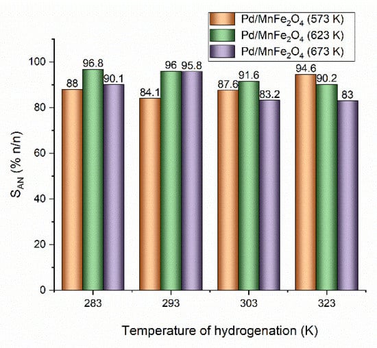 - Hajdu, V.; Muránszky, G.; Nagy, M.; Kopcsik, E.; Kristály, F.; Fiser, B.; Viskolcz, B.; Vanyorek, L. Development of High-Efficiency, Magnetically Separable Palladium-Decorated Manganese-Ferrite Catalyst for Nitrobenzene Hydrogenation. Int. J. Mol. Sci. 2022, 23, 6535. [Google Scholar] [CrossRef]