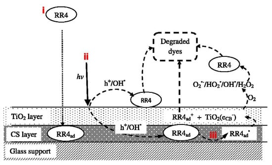 - Nawi, M.A.; Sabar, S. Sheilatina Photocatalytic Decolourisation of Reactive Red 4 Dye by an Immobilised TiO2/Chitosan Layer by Layer System. J. Colloid. Interface Sci. 2012, 372, 80–87. [Google Scholar] [CrossRef]