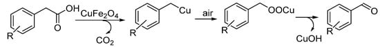 | Oxidative decarboxylation of phenylacetic acid | Simple, effective, and ligand-free production of aldehydes and ketones | [93] | |
