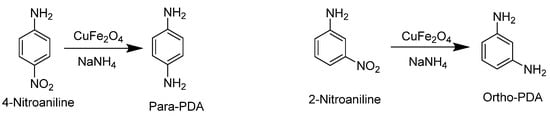 | Reduction of ortho and para nitroaniline | Showed excellent reduction profile for nitroanilines | [100] | |