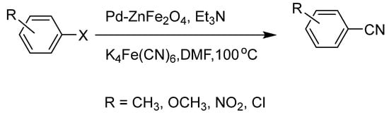 3.1. Heterogenous Catalysis of Ferrites in Organic Reactions