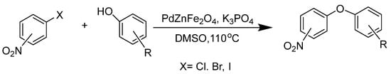 | C–O coupling in the Ullmann reaction | High yields No protection to the sensitive functional groups (i.e., MeCO, CN, and NH2) | [91] | |