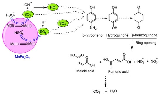 - Mateus, L.; Torres-Alcázar, A.; López-Ramón, M.V.; Álvarez, M.Á.; Moreno-Castilla, C. Manganese Ferrite Solid Nanospheres Solvothermally Synthesized as Catalyst for Peroxymonosulfate Activation to Degrade and Mineralize Para-Nitrophenol: Study of Operational Variables and Catalyst Reutilization. J. Environ. Chem. Eng. 2021, 9, 105192. [Google Scholar] [CrossRef]