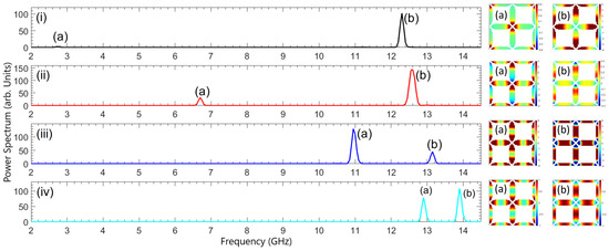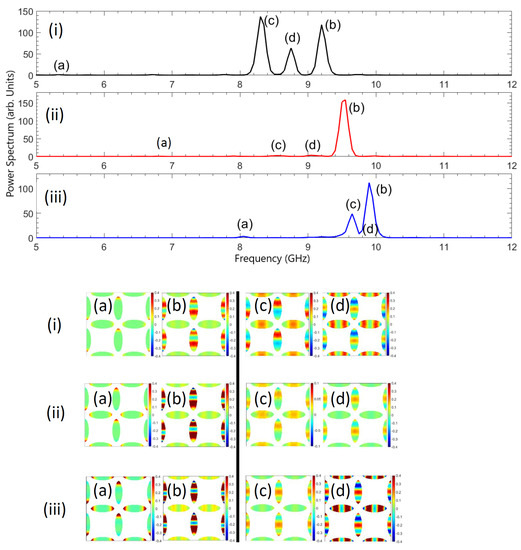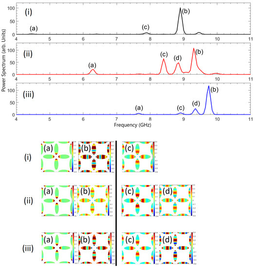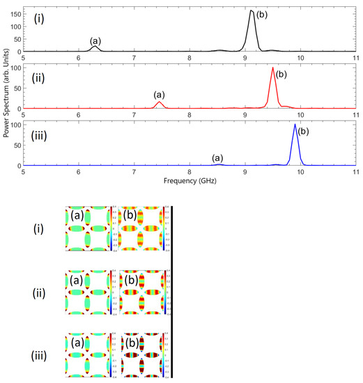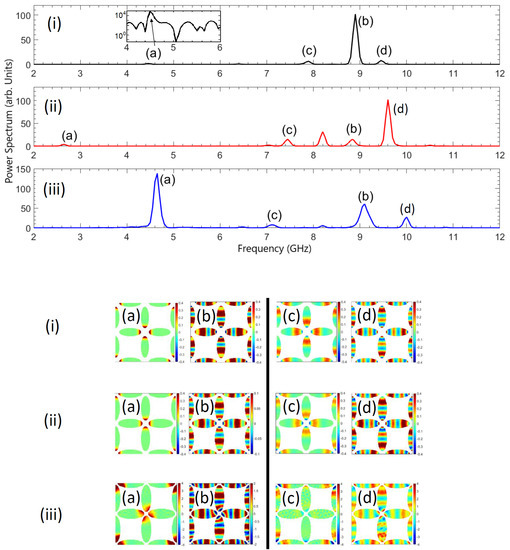 - Montoncello, F.; Giovannini, L. Bandwidth broadening and asymmetric softening of collective spin waves in magnonic crystals. Appl. Phys. Lett. 2014, 104, 242407. [Google Scholar] [CrossRef]