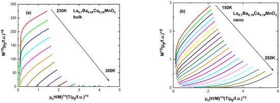 - Arrott, A. Criterion for Ferromagnetism from Observations of Magnetic Isotherms. Phys. Rev. 1957, 108, 1394–1396. [Google Scholar] [CrossRef]