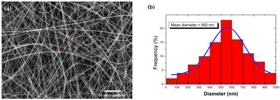 - Malašauskiene, J.; Milašius, R.; Kuchanauskaitė, E. Possibilities for the Estimation of Electrospun Nanofibre Diameter Distribution by Normal (Gaussian) Distribution. Fibres Text. East. Eur. 2016, 24, 23–28. [Google Scholar] [CrossRef]