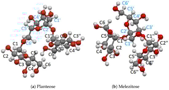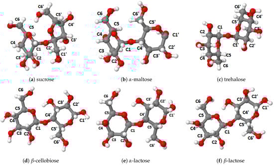 Figure 2. In addition, we considered two polymorph structures of both sucrose and lactose. These are referred to as Structure 1 and Structure 2.