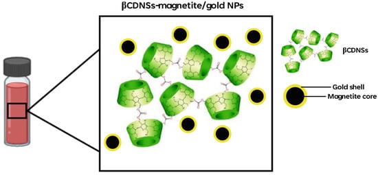 Schematic representation of βCDNSs association with magnetite/gold NPs.