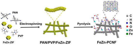 Synthesis process illustration of FeZn-PCNF membrane.