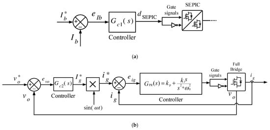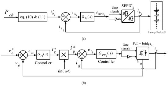 Block diagram of the control loops of each submodule per each battery pack during the charging mode: (a) SEPIC converter (b) Full-bridge.