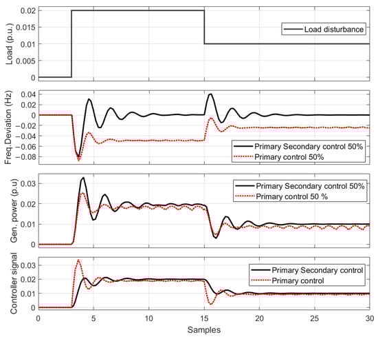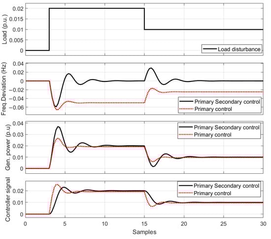 Dynamic response when primary and secondary control actuates in an isolated system.