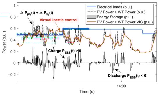 - The virtual inertia control utilizing Energy Storage Systems (ESS) is tasked with providing power that includes the necessary inertia within a timeframe of 1 to 5 s, coinciding with the onset of disturbances caused by the integration of renewable generation into the electrical system.