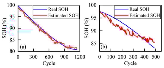 To cope with climate warming and environmental pollution, electric vehicles have been widely used around the world. The power battery is one of the core components of the electric vehicle power system. Lithium-ion batteries have become the preferred power energy system for electric vehicles because of their advantages in superior energy density, high efficiency, and long service life [1,2,3]. However, during storage and operation, the physical and chemical properties of the battery will change, resulting in a decrease in battery capacity and power performance [4]. Therefore, the accurate and reliable estimation of the battery State of Health (SOH), which is considered one critical technique in the Battery Management System (BMS), is used to monitor and control the battery aging state [5]. Currently, SOH estimation methods can be divided into two broad categories: model-based methods and data-driven methods [6,7].
