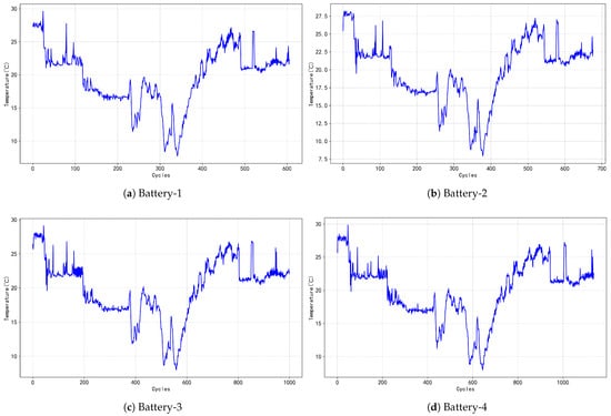 This experiment began on 16 August 2023, and the charging and discharging cycle tests were conducted continuously. The data for this study encompasses all information collected between 16 August 2023 and 6 July 2024. The dataset includes voltage, current, and temperature information for each charge and discharge cycle, which were used to calculate the charging and discharging capacities for each cycle.