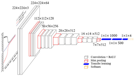 Compared to conventional neural networks, CNNs excel at efficiently extracting high-level features from data while requiring fewer parameters for network construction and minimizing computational load to improve accuracy and speed. However, training CNNs can be resource-intensive, necessitating a substantial amount of labeled data and posing a risk of overfitting [31]. Transfer learning effectively leverages small datasets, which mitigates the risk of overfitting [32]. Therefore, this study integrates these two methodologies to establish a DTL network. The architecture of the DTL network is illustrated in Figure 8.